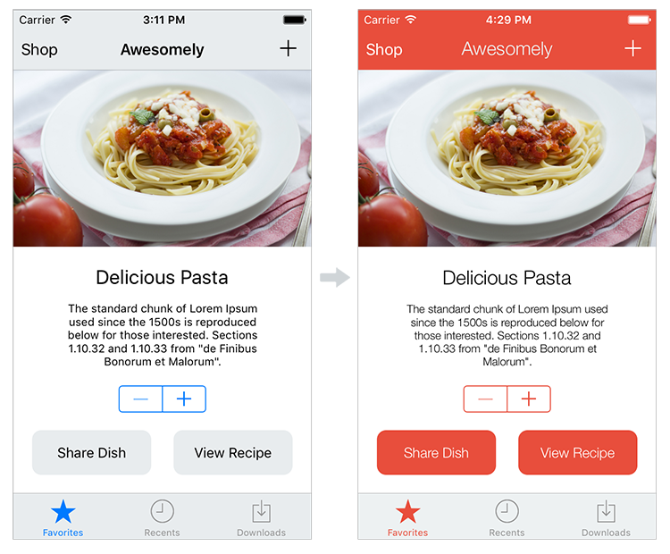 ####Flat Colors Using a flat color is as easy as adding any other color in your app (if not easier). For example, to set a view's background property to a flat color with a dark shade, you simply have to do the following: