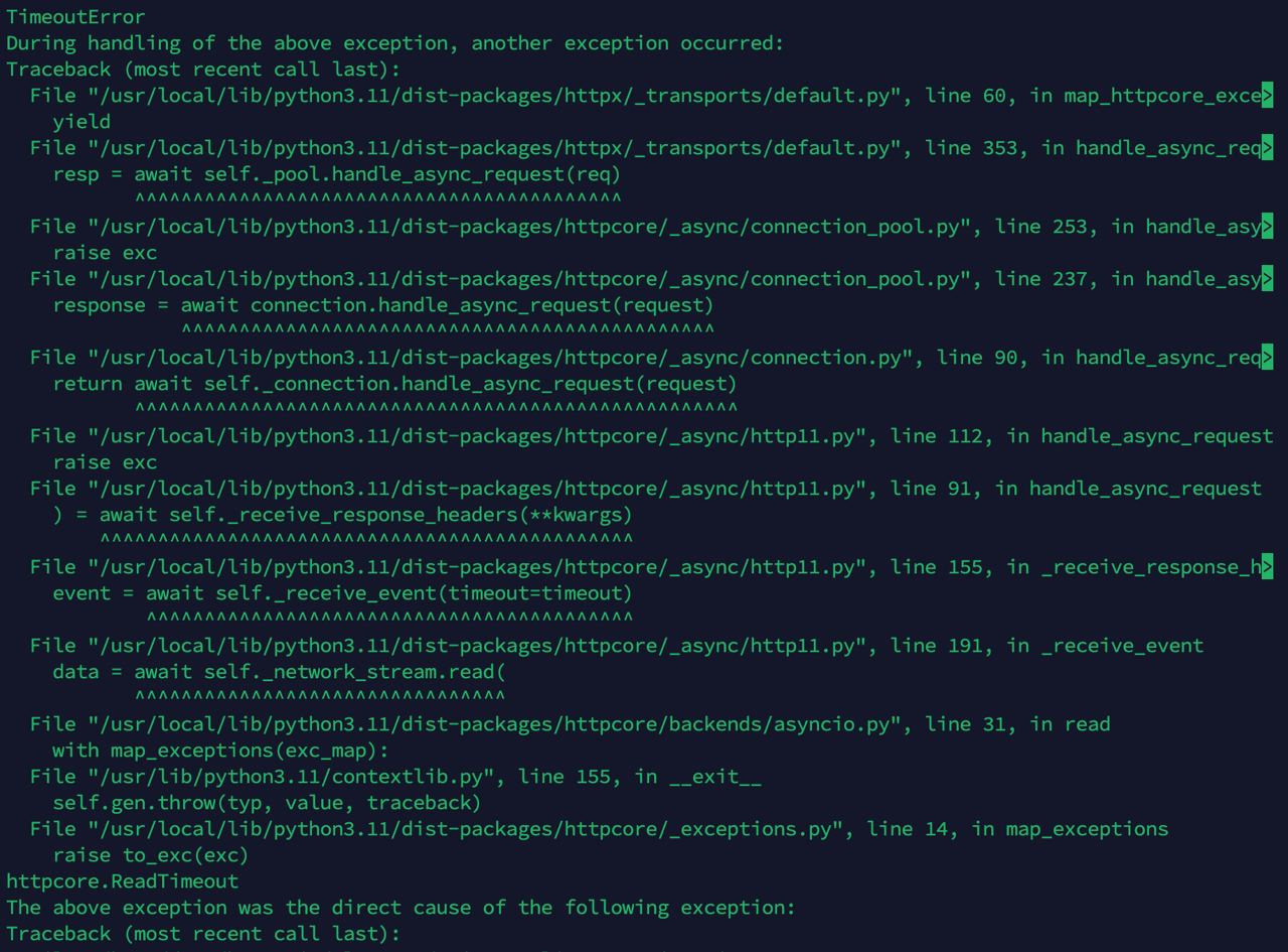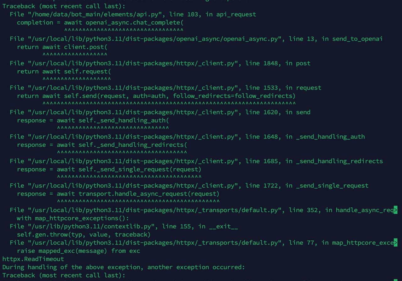 Hello I am using your library. Works well, but sometimes this error takes off. All screenshots are one big mistake. We work with a lot of traffic, and this error is not even readable. At the output after calling the Api, we read and process all errors, but this error does not occur with openAI, but most likely in your module. Are there any suggestions how this can be solved. Thank you in advance .