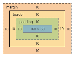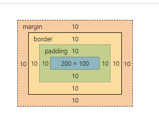 内边距区域padding: 如果内容区域设置了背景、颜色或图片,这些样式为延伸到padding上<div class="parent"> <div class="child"></div> </div> .parent { width: 200px; height: 100px; background: #faa; } .child { width: 100%; height: 100%; border: 10px solid yellowgreen; padding: 10px; margin: 10px; }